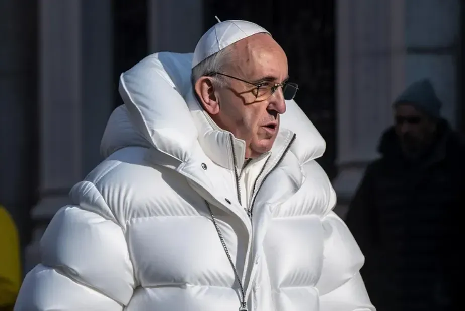 Uma outra plataforma de geração de imagens que ganhou notoriedade é a Midjourney, que ficou famosa por produzir imagens do Papa Francisco vestindo uma jaqueta inflável branca.